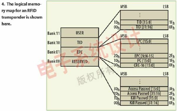 圖4:RFID應(yīng)答器的邏輯內(nèi)存映射。