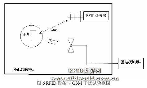 設(shè)RFID 讀寫器及天線,手機(jī)通過假設(shè)在暗室中的另外一個天線與連接在暗室外的基站模擬器進(jìn)行通