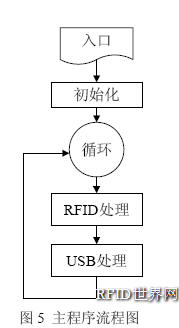 整個(gè)的軟件包括下位機(jī)和上位機(jī)兩部分,包括了射頻收發(fā)、電機(jī)控制、USB 接口、WDM驅(qū)動(dòng)和應(yīng)用程序等,其中射頻收發(fā)、電機(jī)控制、USB 接口控制屬于下位機(jī)模塊,其流程圖如圖4 所示: