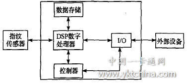 指紋模塊:為了實現指紋識別功能,選擇北京飛潤公司的嵌入式指紋模塊BPM02。BPM02是由指紋采集芯片、高速處理芯片DSP、SRAM、FLASH閃存及相應控制系統(tǒng)組成,該模塊將指紋采集芯片與處理板分離,方便了用戶進行二次開發(fā),體積小巧,可隨意地集成于各應用產品之中。該模塊采用高性能硅芯片采集指紋圖象,并用以DSP為核心的指紋處理模組,采用飛潤科技獨特的指紋算法生成指紋特征數據,加密后存儲于閃存之中,可在模塊內獨立完成采集、處理、比對、存儲等功能,也可將數據傳至上位機進行比對,在本系統(tǒng)中我們采用的就是后者,也就是采用了實時型考勤系統(tǒng),指紋模塊的結構如圖2所示。