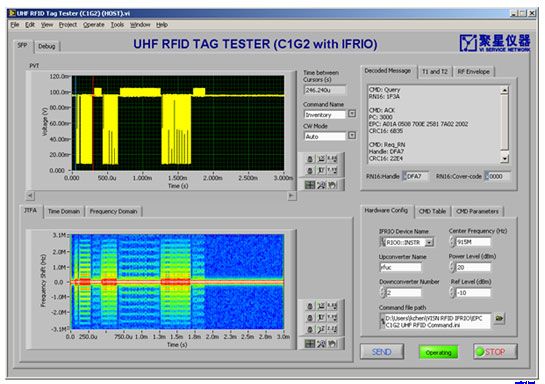 隨著成本的下降和標(biāo)準(zhǔn)化的實(shí)現(xiàn),RFID技術(shù)的全面推廣和普遍應(yīng)用將是不可逆轉(zhuǎn)的趁勢。面對RFID測試領(lǐng)域的巨大需求以及相關(guān)測試儀器的匱乏,我們采用NI在測試領(lǐng)域的優(yōu)勢技術(shù),結(jié)合聚星在射頻測試領(lǐng)域的技術(shù)專長,成功的構(gòu)建了一套基于模塊化儀器的RFID測試系統(tǒng)。該系統(tǒng)的推出彌補(bǔ)了RFID測試領(lǐng)域的空白,對比于傳統(tǒng)的測試儀器,無論是在功能還是性能上,該系統(tǒng)均處于業(yè)界領(lǐng)先地位。