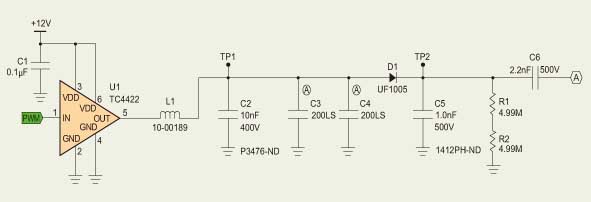 圖6:在基站電路中,電流驅(qū)動器U1放大來自MCU的125 kHz方波脈沖的功率。U1的方波脈沖輸出通過由L1、C2、C3和C4組成的LC串聯(lián)諧振電路后變成正弦波。