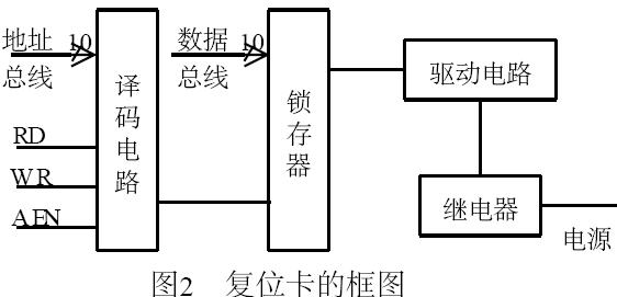 采用586 微機(jī), 配有網(wǎng)卡、復(fù)位板。微機(jī)和網(wǎng)卡的硬件原理不作說(shuō)明。圖2給出的是復(fù)位卡的框圖。