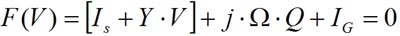 該等式描述了線性和非線性電路電流之間的關(guān)系,括號中的參數(shù)是線性部分,其余的是非線性部分的。Is是電源電流,Y是線性電路導(dǎo)納矩陣(admittance matrix),V是內(nèi)部節(jié)點電壓矢量,Ω是對角線上的角頻率矩陣,Q是頻域中的電荷矢量,IG是頻域中的非線性電路的電流。當(dāng)線性和非線性電路達(dá)到平衡時,這種解決方案就開始收斂。