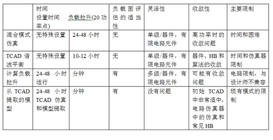 表1:TCAD數(shù)據(jù)的大信號仿真四種方法比較。