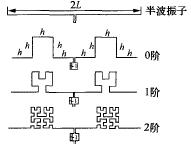 0至4 階的Hilbert分形結構如圖1 所示. Hil2bert天線是1 /3等邊分形天線, 0階Hilbert天線各邊長均為h. n階Hilbert天線總長度為