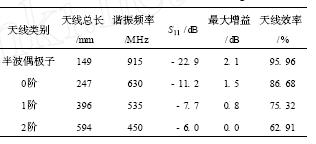 表2 一維Hilbert分形標簽天線參數(shù)