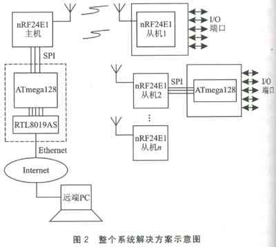 在嵌入式TCP/IP平臺下利用工作頻率為2.4 GHz的無線收發(fā)模塊nRF24E1,進行短距離的點對多點的無線通信;用無線技術解決最后10 m的通信問題,可實現(xiàn)一種 無線接入的解決方案。