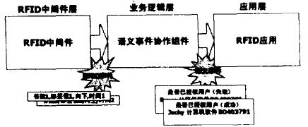 圖3顯示了RFID在基于語義協(xié)作的RFID 系統(tǒng)中的角色,以及在此系統(tǒng)中可能出現(xiàn)的事件類型。語義協(xié)作組件從RFID中間件獲得RFID事件,然后將它們轉(zhuǎn)換為一種更可用的形式,從而使得對RFID的應(yīng)用更加高效。