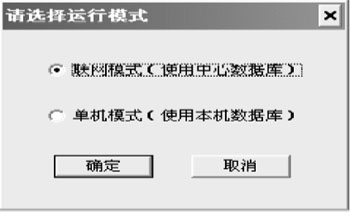 系統(tǒng)軟件通過后臺的SQL語句與數(shù)據(jù)庫連接。點擊系統(tǒng)運行程序,出現(xiàn)連接界面(如圖2所示),可以通過選擇聯(lián)網(wǎng)模式或單機模式進行連接。