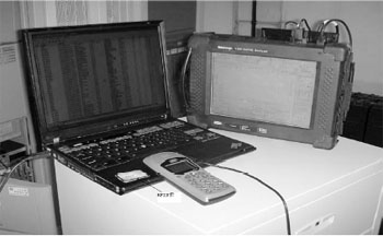 在2006年,寧波市無線電管理處利用該系統(tǒng)分別對浙江移動寧波分公司的GSM網(wǎng)絡(luò)、中國聯(lián)通寧波分公司的CDMA網(wǎng)絡(luò)和GSM網(wǎng)絡(luò)按3%比例進行了抽檢,對62個基站115臺設(shè)備進行現(xiàn)場檢測和數(shù)據(jù)輸入。基站的現(xiàn)場測試及RFID寫卡過程如圖4所示。