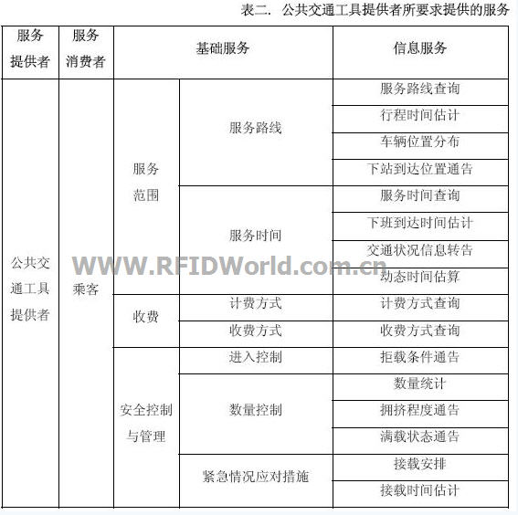 RFID(Radio Frequency Identification,無線射頻識別)技術(shù),最初作為二戰(zhàn)時期用于敵我飛機(jī)識別的技術(shù),最近幾年在物流與供應(yīng)鏈管理領(lǐng)域重新煥發(fā)了新機(jī),得到了極大的重視與長足的發(fā)展[12]。在交通運(yùn)輸領(lǐng)域,RFID技術(shù)也在公交卡[7][9]、不停車收費(fèi)[8]、停車場管理、車輛類型及流量信息采集、高速公路車輛速度計算等方面取得了應(yīng)用成效[6]。為了系統(tǒng)地分析RFID在智能交通中的應(yīng)用前景以及應(yīng)用模式,本文首先從“面向服務(wù)”的思想,來系統(tǒng)地劃分智能交通中不同主體在面向不同服務(wù)對象時所需要提供的服務(wù)內(nèi)容,進(jìn)而分析怎樣去大規(guī)模地應(yīng)用RFID技術(shù)去實(shí)現(xiàn)這些服務(wù)內(nèi)容。最后,針對RFID作為一門數(shù)據(jù)采集技術(shù),在與其他數(shù)據(jù)采集技術(shù)(比如:GPS),以及數(shù)據(jù)處理分析平臺(比如GIS)的比較與融合方面作出簡單地探討。