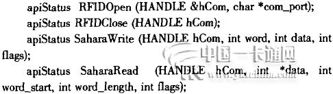 HP公司提供了掌上電腦的讀寫器.并將掌上電腦安裝在其中。通過這一單元來進(jìn)行卡的讀寫。編寫卡讀寫軟件時,只須將隨讀寫器一起提供的動態(tài)連接庫安裝到臺式機(jī)上,并且連接到EVC4、0的工程內(nèi)。對于此動態(tài)連接庫來說。常用的函數(shù)有四個: