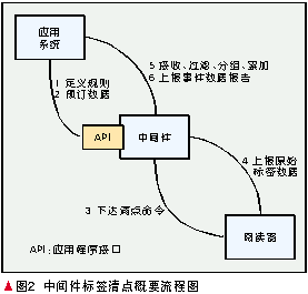 基本的RFID系統(tǒng)一般由3部分組成:標簽、閱讀器以及應(yīng)用支撐軟件。中間件是應(yīng)用支撐軟件的一個重要組成部分,是銜接硬件設(shè)備如標簽、閱讀器和企業(yè)應(yīng)用軟件如企業(yè)資源規(guī)劃(ERP)、客戶關(guān)系管理(CRM)等的橋梁。中間件的主要任務(wù)是對閱讀器傳來的與標簽相關(guān)的數(shù)據(jù)進行過濾、匯總、計算、分組,減少從閱讀器傳往企業(yè)應(yīng)用的大量原始數(shù)據(jù)、生成加入了語意解釋的事件數(shù)據(jù)。可以說,中間件是RFID系統(tǒng)的“神經(jīng)中樞”。
