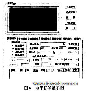 圖6為采用本方法開發(fā)的單個(gè)電子標(biāo)簽屏幕顯示系統(tǒng)的設(shè)計(jì)操作界面。圖中顯示的為主控計(jì)算機(jī)下發(fā)的一個(gè)字符串對象、一個(gè)圖片對象和兩個(gè)直線對象。