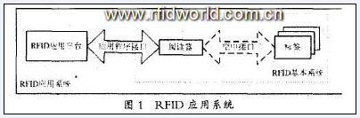 閱讀器是RFID系統(tǒng)中的基本單元。RFID系統(tǒng)的基本組成包括標(biāo)簽和閱讀器兩部分,RFID應(yīng)用系統(tǒng)包括標(biāo)簽、讀寫器和RFID應(yīng)用平臺(tái)三大部分。如圖1所示。