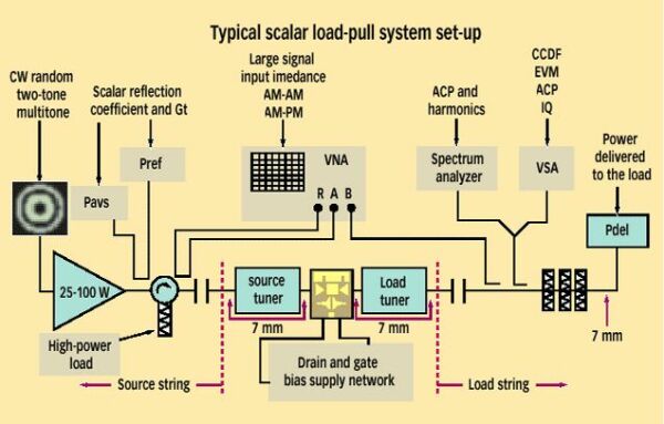 負(fù)載拉移測(cè)量技術(shù)在最近幾年愈來愈受歡迎,該技術(shù)通常被用來測(cè)量RF功率放大器的參數(shù),比如峰值輸出功率、增益,以及在器件參考平面出現(xiàn)的各種復(fù)雜負(fù)載條件下的效率。在同一測(cè)量環(huán)境中采用多種復(fù)雜的調(diào)制信號(hào)也越來越普遍。對(duì)大功率RF半導(dǎo)體生產(chǎn)商而言,準(zhǔn)確表征產(chǎn)品的特性還存在困難,與此同時(shí)開發(fā)這類器件還必須采用大的外圍設(shè)備。這類設(shè)備一般為60mm,終端阻抗低于0.5Ω,品質(zhì)因數(shù)(Q)在8至10之間。