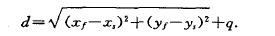 t 時刻機(jī)器人到某一路標(biāo)的距離d是路標(biāo)坐標(biāo)f i ( x f i ,y f i )與機(jī)器人位置坐標(biāo)st ( x s ,ys )的函數(shù),f i ( x f i ,y f i )表示第i個路標(biāo)的實(shí)際位置。模型中的噪聲用q表示。觀測模型可以表示為:
