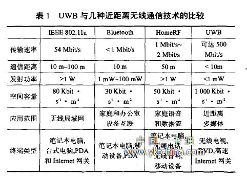 UWB與幾種近距離無線通信技術(shù)的比較