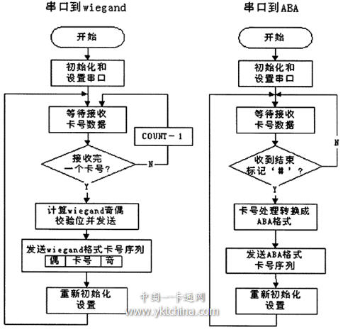 通過對目前市場上常見讀卡器和控制器進行調(diào)查分析, 發(fā)現(xiàn)在停車場和消費領域使用較多的是RS232/RS485接口方式,門禁等出入口控制領域的主流是維根接口,而銀行系統(tǒng)的信用卡則一般使用ABA磁卡接口。針對這種狀況, 我們研制了這種維根及ABA磁卡編碼產(chǎn)生器。利用這種編碼產(chǎn)生器可以將RS2 32/RS48 5接口的讀卡器輸出轉(zhuǎn)換成標準的維根和ABA磁卡編碼輸出。這樣在組建“一卡通” 系統(tǒng)即只選用帶RS232/RS48 5接口的讀卡器, 保證系統(tǒng)中使用的讀卡器類型統(tǒng)一, 同時也確保了使用同 張卡完成所有功能。當存某些了系統(tǒng)斗I必須使用帶維根或磁卡接口的控制器時, 可以使用木文介紹的編碼產(chǎn)生器完成數(shù)據(jù)交換, 為“一卡通” 系統(tǒng)的組建帶來方便。另外還可以利用該編碼產(chǎn)生器輸出特殊編碼, 供系統(tǒng)調(diào)試使用。