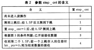 圖3曼碼調(diào)制的數(shù)據(jù)串起始/結(jié)束標(biāo)志的時(shí)序特征圖3中,stepcnt為讀操作步序,其確切含義見表2。