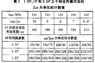 由上可知,只要1.5P、1P和0.5P的間期是不重疊的。根據(jù)采用100~150kHz和110~140kHz兩組數(shù)據(jù)的對(duì)比可見,使用后者更合適。另一個(gè)辦法是:通過試驗(yàn),找到合適的間期指數(shù),即可依此作為電平躍變的判別閾。這樣,在確保識(shí)別能力的前提下,又從工藝上降低了對(duì)于振蕩回路的頻率精度要求。