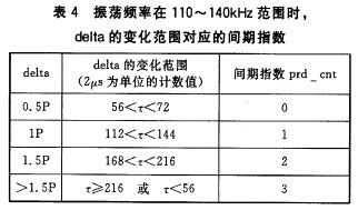 根據(jù)上述振蕩頻率的變化范圍110~140kHz,將編碼變化的不同間隔轉(zhuǎn)化成相應(yīng)的間期指數(shù),具體如表4所列。