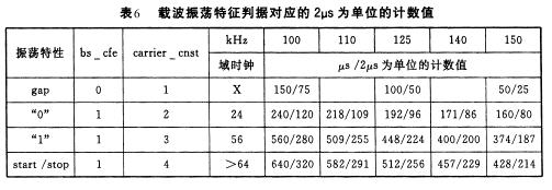 根據(jù)上述的載波振蕩特性,利用carriercnst參數(shù)進(jìn)行界定(見表6),讀操作即不難實(shí)現(xiàn)。讀寫操作過程中,均使用了2μs為單位的計(jì)數(shù)值作為定時(shí)單位,目的是要使用MCS-51系列的微控制器的定時(shí)器。