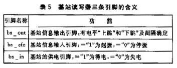 基站讀寫器上有三個(gè)引腳:bsout、bscfe和bsin,它們的含義見表5。