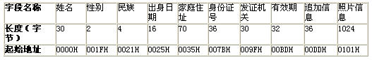 表一:二代身份證數(shù)據(jù)格式