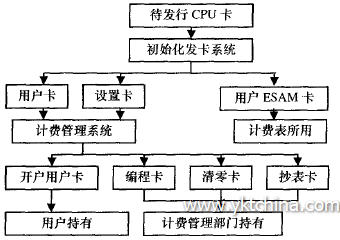 待發(fā)行CPU 卡是由計(jì)費(fèi)表生產(chǎn)廠家提供給計(jì)費(fèi)管理部門的,計(jì)費(fèi)管理部門在初始化發(fā)卡系統(tǒng)里設(shè)置自己的密鑰體系。根據(jù)這個(gè)密鑰體系通過(guò)初始化發(fā)卡系統(tǒng),生成本計(jì)費(fèi)管理部門所需使用的用戶卡、設(shè)置卡等。用戶卡和用戶ESAM卡是一一對(duì)應(yīng)的。用戶卡發(fā)行后在計(jì)費(fèi)管理系統(tǒng)里進(jìn)行建檔立戶,并且進(jìn)行第1次購(gòu)水(電、氣),然后交給用戶使用。ESAM 卡發(fā)行后直接安裝到計(jì)費(fèi)表里使用。