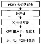 (1)計(jì)算機(jī)。是整個(gè)系統(tǒng)的核心,安裝有CPU卡發(fā)行軟件以及水、電、氣表計(jì)費(fèi)管理軟件。