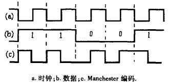 圖2 一個(gè)典型數(shù)據(jù)序列的Manchester編碼波形圖