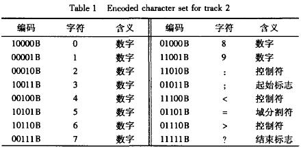 ISO有關(guān)標(biāo)準(zhǔn)還規(guī)定了該磁道編碼字符集(表1).