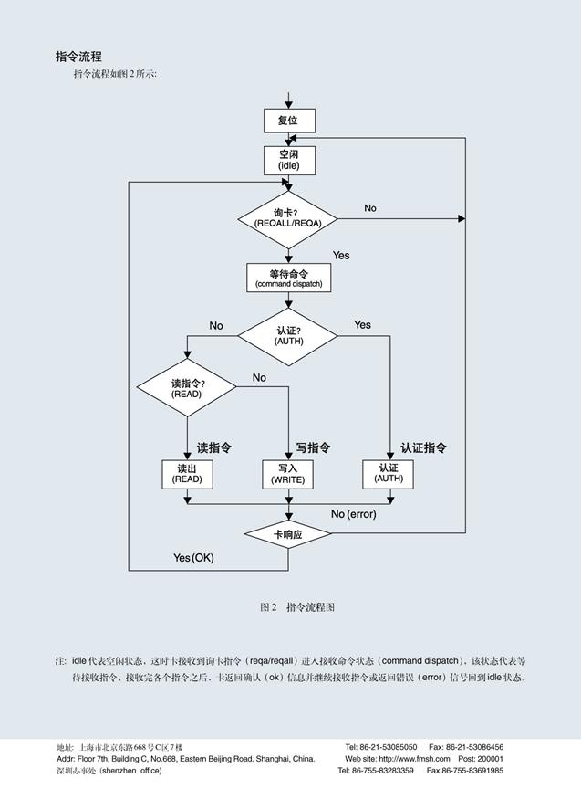 讀寫器通過發(fā)出指令來確認(rèn)是否有華虹非接觸式IC卡產(chǎn)品(SHC1102)進入其操作范圍,并通過應(yīng)答確認(rèn)產(chǎn)品的類型。并由產(chǎn)品類型確定相互之間的通訊協(xié)議和通訊速率。卡應(yīng)在確認(rèn)被選中后返回卡的用戶碼(CID)。