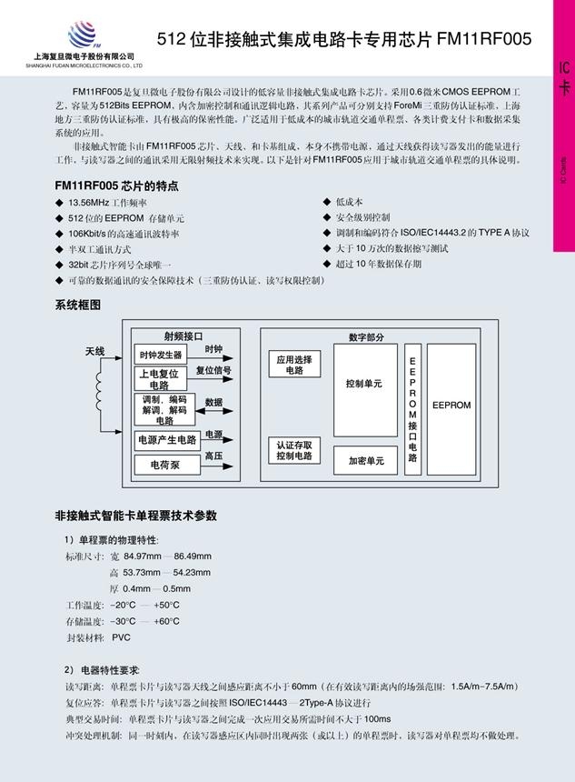 三.復(fù)旦微電子(512位非接觸式集成電路卡專用芯片)FM11RF005芯片卡