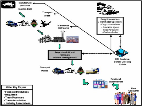 圖1-1國際航運在國際物流與供應鏈中的地位
