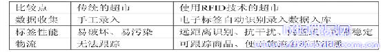 1 傳統(tǒng)超市與基于RFID超市簡要比較表