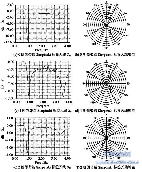 基于領(lǐng)帶結(jié)Sierpinski Gasket分形結(jié)構(gòu)的標(biāo)簽天線由于具有內(nèi)部空白區(qū)間的擴(kuò)充性,隨著階數(shù)的增加,在保證多頻段特性的同時(shí),有效地保持了天線的增益和效率不急劇下降。利用此分形結(jié)構(gòu)的標(biāo)簽天線,可以實(shí)現(xiàn)多頻段高效率的RFID標(biāo)簽天線,有利于生產(chǎn)規(guī)模化與RFID的普及。