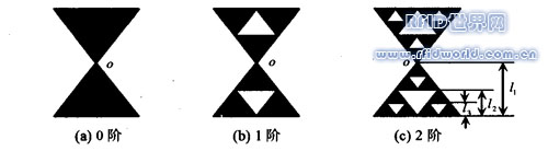 針對(duì)這些需求,本文介紹了基于領(lǐng)帶結(jié)SierpinskiGasket分形結(jié)構(gòu)的標(biāo)簽天線,并對(duì)不同分形維數(shù)的標(biāo)簽天線分別比較了其諧振頻率、S 等特性,從中選出了適合于RFID系統(tǒng)所使用的標(biāo)簽天線,并分析了其端口特性與分形自相似結(jié)構(gòu)間的對(duì)應(yīng)關(guān)系。