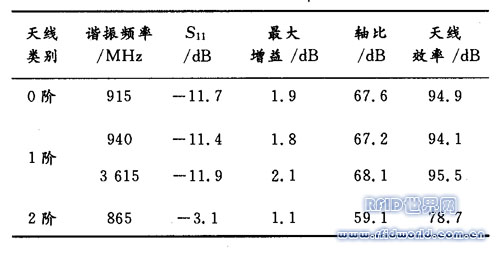 表1 領(lǐng)帶結(jié)Sierpinski標(biāo)簽天線參數(shù)
