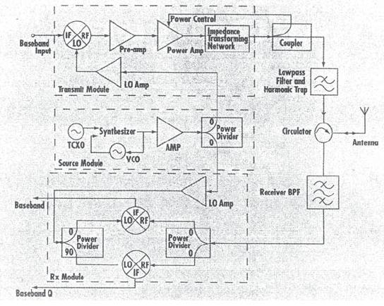 對于源模塊,關(guān)鍵是要適應(yīng)性強(qiáng),這樣單塊PC板可以用于處理所有不同的頻段。用一個(gè)集成合成器/VCO集成電路,采用不同的電感值可以對準(zhǔn)VCO頻段的中心。日本頻段比美國和歐洲頻段要求更快的開關(guān)速度,這仍然可以用5KHz BW(帶寬)環(huán)形濾波器實(shí)現(xiàn),但需用不同的元件值。在功率分配器中需要有20dB量級(jí)的隔離。基于成本考慮,一般采用單片窄帶功率分配器,但對于850~960MHz,它不是最佳的。為了使每個(gè)隔離最佳,采用調(diào)節(jié)電感器和/或電容器重新對準(zhǔn)功率分配器隔離。