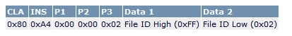 文件選擇命令可打開文件,從而讀/寫文件的記錄。它是一個7字節(jié)命令,格式為: