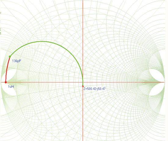 ① 設(shè)定特性阻抗Z。=500W,輸入信號頻率為13.56MHz;