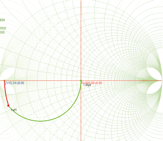 ② 令負載ZL=500W+0.00jW,確定起始點1;