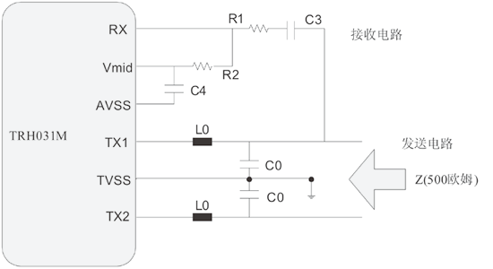 天線本身是一個低電阻的器件,將天線連接到TRH031M需要一個匹配電路。設(shè)計天線的匹配電路有兩種方法:50W匹配天線和使用直接匹配的天線配置。在本設(shè)計中采用直接匹配的天線配置。