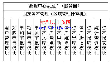 其中數(shù)據(jù)中心服務(wù)器是整個(gè)固定資產(chǎn)系統(tǒng)的核心部分,它主要包括固定資產(chǎn)信息數(shù)據(jù)庫(kù)、部門信息數(shù)據(jù)庫(kù)、資產(chǎn)知識(shí)庫(kù)等數(shù)據(jù)。各區(qū)域管理計(jì)算機(jī)用于完成本區(qū)內(nèi)的資產(chǎn)申購(gòu)、申領(lǐng)、維修、保養(yǎng)登記等作業(yè)管理。區(qū)域管理計(jì)算機(jī)通過(guò)RS-485接口卡與各種讀寫器相連接并對(duì)它們進(jìn)行控制,位置讀寫器記錄和實(shí)時(shí)檢測(cè)資產(chǎn)存放的位置,出/入庫(kù)讀寫器控制電動(dòng)控制門、采集資產(chǎn)出入庫(kù)記錄等。