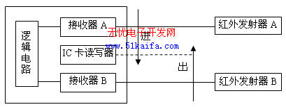 (2)資產(chǎn)移動(dòng):資產(chǎn)移動(dòng)可以實(shí)時(shí)跟蹤固定資產(chǎn)的位置變動(dòng)信息。固定資產(chǎn)進(jìn)出某區(qū)域時(shí)需經(jīng)過(guò)該區(qū)的位置讀寫器,讀寫器記錄此資產(chǎn)電子標(biāo)簽內(nèi)的信息,由邏輯判斷出資產(chǎn)進(jìn)出的方向,如圖3所示。管理機(jī)接收記錄及進(jìn)出標(biāo)識(shí),對(duì)數(shù)據(jù)庫(kù)進(jìn)行修改。若資產(chǎn)進(jìn)入某區(qū),就數(shù)據(jù)庫(kù)中將記錄添加到該區(qū);反之則刪除記錄。這就實(shí)現(xiàn)了固定資產(chǎn)的實(shí)際位置與數(shù)據(jù)中心內(nèi)的信息一一對(duì)應(yīng),為管理人員查詢、點(diǎn)驗(yàn)、尋找資產(chǎn)帶來(lái)了很大的方便。