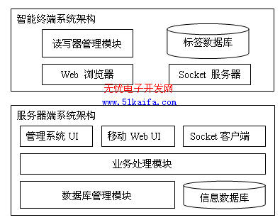該系統(tǒng)分為兩部分開發(fā),PDA端子系統(tǒng)和服務器端子系統(tǒng)。整體架構如圖2。在整個系統(tǒng)中,只有RFID標簽的傳送是通過在PDA和服務器端建立Socket連接進行傳送,其他的文字、圖片、音頻和視頻文件的瀏覽都通過Web服務的方式進行。這樣既保證了標簽傳送的效率也能有效的平衡服務器的負載,具體的實現(xiàn)方法接下來會進行詳細介紹。