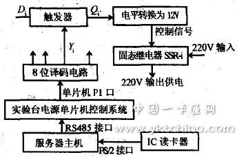 通過這幾年高校擴(kuò)招,各工科院校的實(shí)驗(yàn)教學(xué)壓力劇增。使實(shí)驗(yàn)教學(xué)管理中存在實(shí)驗(yàn)條件不足和實(shí)驗(yàn)設(shè)備、實(shí)驗(yàn)手段相對(duì)落后的兩大問題更為突出。另外,現(xiàn)在全國高校正在進(jìn)行教學(xué)質(zhì)量評(píng)估檢查,而實(shí)驗(yàn)教學(xué)評(píng)中的重要指標(biāo)是所開設(shè)課程的教學(xué)工作量的統(tǒng)計(jì),如實(shí)驗(yàn)課程、實(shí)驗(yàn)項(xiàng)目、實(shí)驗(yàn)人時(shí)數(shù)、綜合設(shè)計(jì)性實(shí)驗(yàn)的個(gè)數(shù)及開設(shè)情況等。每年每個(gè)任課教師都進(jìn)行類似的重復(fù)性填表工作,不僅浪費(fèi)時(shí)間,而且統(tǒng)計(jì)數(shù)據(jù)不準(zhǔn)確。因此,筆者參與了我校實(shí)驗(yàn)教學(xué)改革項(xiàng)目,設(shè)計(jì)了基于IC卡的高校實(shí)驗(yàn)室智能管理系統(tǒng)。該系統(tǒng)主要實(shí)現(xiàn)對(duì)實(shí)驗(yàn)上機(jī)學(xué)生的身份識(shí)別、實(shí)驗(yàn)臺(tái)電源控制、實(shí)驗(yàn)內(nèi)容要求的自動(dòng)生成、實(shí)驗(yàn)數(shù)據(jù)和成績的記錄、學(xué)期末各類實(shí)驗(yàn)工作量的統(tǒng)計(jì)和上傳等。